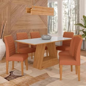 Mesa Com 6 Cadeiras 1,60 Pavia Cinam/off Whi/terrac - Móveis Arapongas - Marrom