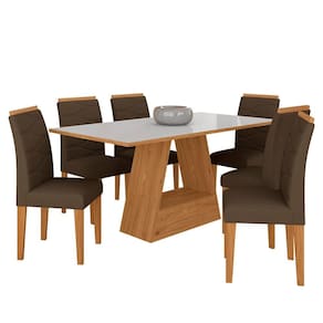 Detalhes Técnicos da Mesa - Pintura UV - Quantidade de Lugares: 06 - Estrutura: MDP de 15mm - Tampo: MDP de 25mm - Tonalidade Mesa: Cinamomo/Off White - Medida Montada: A:80cm | L:160cm | P:80cm