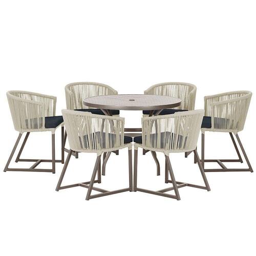 Combinando estilo e resistencia, esta Mesa e cadeiras traz o melhor do design contemporaneo em aluminio com micro pintura e acabamento em corda nautica. O Estofado impermeavel completa o conforto e a funcionalidade, tornando-a ideal para ambientes externos e internos.
