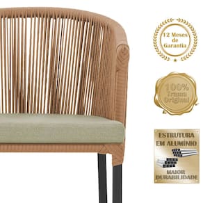 design contemporâneo em alumínio com micro pintura e acabamento em corda náutica. O Estofado impermeável completa o conforto e a funcionalidade, t