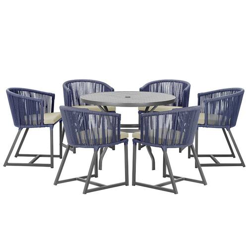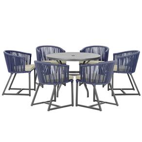 Mesa com 6 Cadeiras de Jantar Roma 120cm e Noronha em Alumínio - Azul