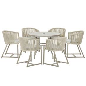 Mesa com 6 Cadeiras de Jantar Roma 120cm e Noronha em Alumínio - Bege Médio