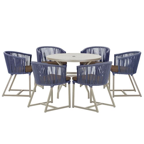 Mesa com 6 Cadeiras de Jantar Roma 120cm e Noronha em Alumínio - Azul