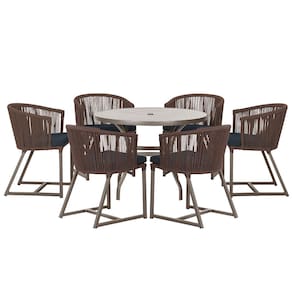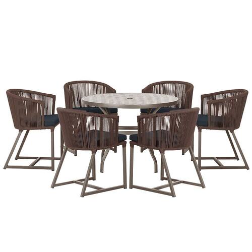 Mesa com 6 Cadeiras de Jantar Roma 120cm e Noronha em Alumínio - Marrom