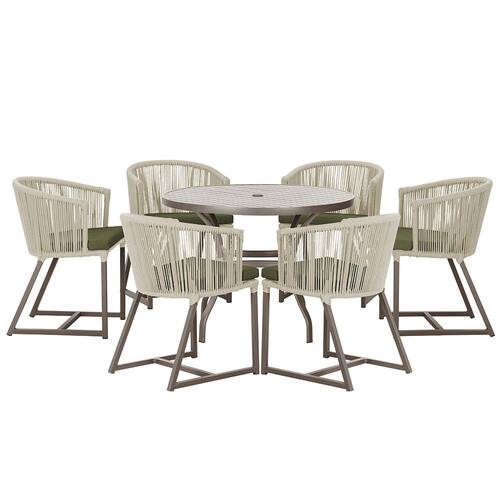 Mesa com 6 Cadeiras de Jantar Roma 120cm e Noronha em Alumínio - Bege Médio