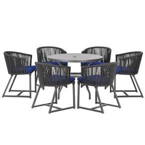 Mesa com 6 Cadeiras de Jantar Roma 120cm e Noronha em Alumínio - Preto