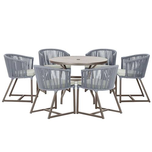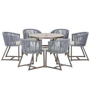 Mesa com 6 Cadeiras de Jantar Roma 120cm e Noronha em Alumínio - Prata