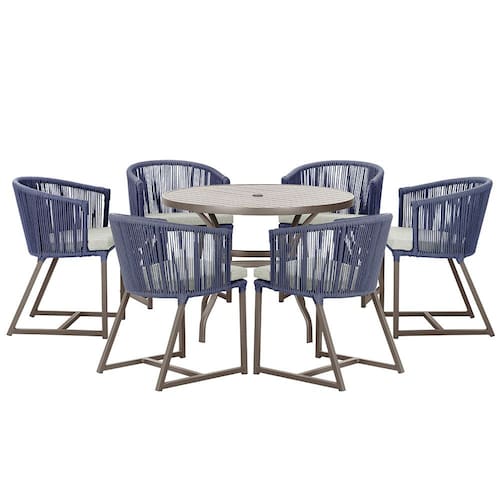 Mesa com 6 Cadeiras de Jantar Roma 120cm e Noronha em Alumínio - Azul