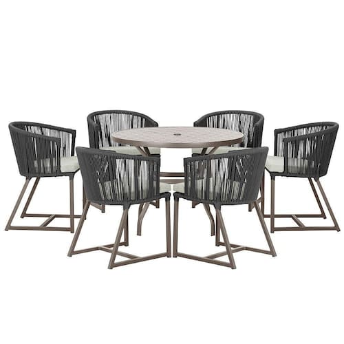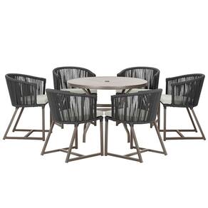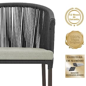 Combinando estilo e resistencia, esta Mesa e cadeiras traz o melhor do design contemporaneo em aluminio com micro pintura e acabamento em corda nautica. O Estofado impermeavel completa o conforto e a funcionalidade, tornando-a ideal para ambientes externos e internos.