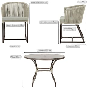 Fotos meramente ilustrativas. Tonalidades podem variar dependendo do monitor. Os objetos que ambientam as Fotos nao acompanham o produto. Antes de comprar o seu produto verifique as medidas, o onde pretende instalar e se necessario contratar o servico de um qualificado. Produto conhecido como: mesa e cadeiras, Jogo de jantar, Estofado impermeavel, Moveis de exterior, Cadeira resistente a agua, Cadeira estofada, Cadeira para area externa, Cadeira de jardim, Moveis para varanda, Cadeira duravel, Cadeira de alta qualidade, Conforto em Cadeira, Cadeira elegante.