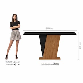 Detalhes Técnicos da Mesa -Quantidade de Lugares: 06 -Material da Base da Mesa: MDP -Material do Tampo: MDF -Medida da Mesa Montada: A:80CM x C:160CM x L:80CM -Mesa suporta até 30KG -Formato: Retangular -Tonalidade da Base: Cinamomo/Preto -Tonalidade do Tampo: Preto