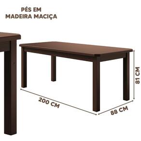 Dimensões da Mesa: Largura 88 cm; Profundidade 200 cm; Altura 81 cm.