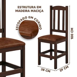 Dimensões da Cadeira: Largura 38 cm; Profundidade 39 cm; Altura 100 cm.