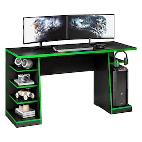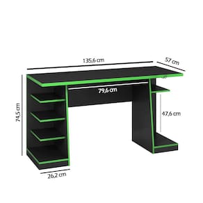 A Mesa Computador Gamer Preta/Verde 6 Prateleiras NT2020 Notável 75x136x57 foi desenvolvida para acomodar computadores maiores, é ideal para usuários de jogos, possui ampla circulação de ar. espaço nichos para maior aproveitamento, organização e acomodação de equipamentos e acessórios, aumentando a eficiência durante o uso.