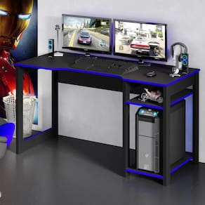 Informações do produto Mesa Gamer Destiny Ideal Para 3 Monitores Preto Azul Tecno Mobili A Mesa Gamer possui usinagem anatômica no tampo para maior conforto, nicho para CPU aberto para melhor ventilação, proporciona o melhor para cada jogador, com visual diferenciado e inovador, tem espaço para até dois monitores. Características do Produto: Material: MDP 15 mm Revestimento: BP Tipo e quantidade de pés: 4 sapatas niveladoras Prateleiras: 2 Suporta até: 15 kg tampo/10 Kg prateleira Necessidade de montagem: Sim. Montar o móvel deitado de costas. Forrar o chão com o papelão das embalagens, aconselhamos a ser feita por um , não expor o móvel a fontes de calor ou de umidade. Limpeza e conservação: Utilizar somente pano úmido e sabão neutro Dimensões do Produto Altura: 75 cm Largura: 136 cm Profundidade: 60 cm Peso: 22,20 Kg Observações Importantes: A Combo Stock não se responsabiliza pela montagem ou desmontagem dos produtos (que deverá ser feita por um qualificado). Estes serviços não estão incls nos valores dos mesmos. Pode haver alguma diferença de tonalidade entre as imagens do anúncio e o produto real, por conta do tratamento de imagens e a calibração de cores do seu monitor. No ato da compra, certifique-se de que as medidas do produto estão adequadas aos elevadores, portas e corredores do da , visto que não fazemos a montagem ou desmontagem de portas ou janelas, pela escada ou içamentos pelo lado de fora do prédio. Ao receber a mercadoria, o cliente deve verificar as condições da embalagem, caso haja alguma NÃO assine o de . Em casos de Edifícios ou condomínios, o produto será entregue pela transportadora nas respectivas portarias (porteiros) que deverão ser avisados da pelo comprador. Para quaisquer outras dúvidas conosco nos nossos canais de . As imagens são meramente ilustrativas, não acompanham objetos de decoração e eletrônicos.