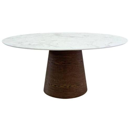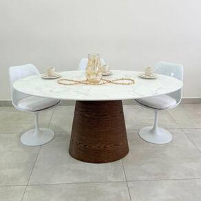 Mesa Cone Oval 137x90 cm Tampo Laca Branca Base Freijó Horizontal
