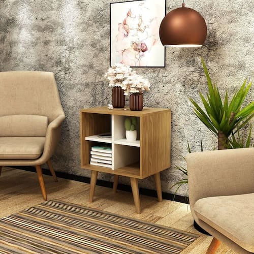 Mesa De Apoio Amêndoa/off White Mesa de Apoio Amêndoa/Off White - Mesa de Apoio com 4 Nichos Estilo e Funcionalidade!