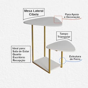 Produzida com materiais de alta qualidade, a Cibele oferece uma estrutura firme e acabamento refinado, garantindo durabilidade e um toque sofisticado na decoração. Versátil, pode ser utilizada ao lado do sofá, poltrona ou até como mesa de apoio em halls e escritórios.