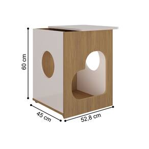 Feito em MDP/MDF 15mm. Possui dupla função mesa de apoio e casinha para pets, o tampo pode ser montado para a esquerda ou direita.