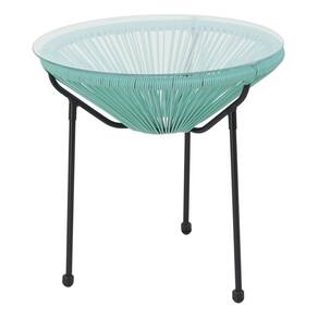Mesa De Apoio Com Rattan Azul Tiffany 50x50 Cm
