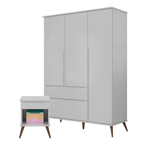 Guarda Roupa Infantil Retrô Alice Cinza Acetinado - Phoenix Baby