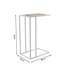 AS IMAGENS SÃO MERAMENTE ILUSTRATIVAS E PODEM SOFRER VARIAÇÕES DE COR E PEQUENOS DETALHES DE ACORDO COM O SEU MONITOR, ILUMINAÇÃO DO AMBIENTE E ATÉ MESMO A SUA PERCEPÇÃO VISUAL.Mesa de Apoio Industrial Elena Industrial Branco com Tampo de Vidro
