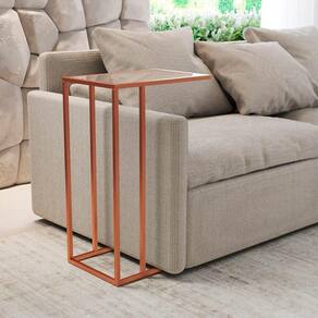 AS IMAGENS SÃO MERAMENTE ILUSTRATIVAS E PODEM SOFRER VARIAÇÕES DE COR E PEQUENOS DETALHES DE ACORDO COM O SEU MONITOR, ILUMINAÇÃO DO AMBIENTE E ATÉ MESMO A SUA PERCEPÇÃO VISUAL.Mesa de Apoio Industrial Elena Industrial Cobre com Tampo de Vidro