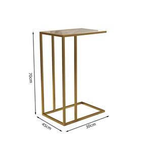 AS IMAGENS SÃO MERAMENTE ILUSTRATIVAS E PODEM SOFRER VARIAÇÕES DE COR E PEQUENOS DETALHES DE ACORDO COM O SEU MONITOR, ILUMINAÇÃO DO AMBIENTE E ATÉ MESMO A SUA PERCEPÇÃO VISUAL.Mesa de Apoio Industrial Elena Industrial Dourado com Tampo de Vidro