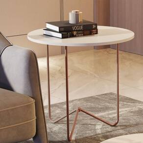 Mesa De Apoio Jb 8004 Luxo Off White Preto Pe Bronze - Moveis Jb - Branco