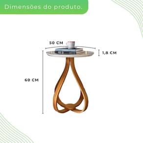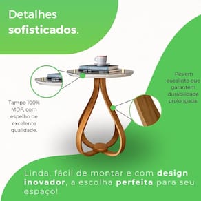 Essa mesa lateral une funcionalidade e sofisticação com seu tampo em MDF revestido com espelho, que adiciona brilho e modernidade ao design. Os pés em eucalipto, com acabamento natural, proporcionam um toque orgânico e acolhedor. Compacta e versátil, é perfeita para complementar diferentes ambientes, servindo como apoio para objetos decorativos ou itens do dia a dia. Uma peça que combina durabilidade e elegância de forma harmoniosa. Acabamento do Tampo: Laca Altura do Espelho: 50 cm Ambiente Principal: Sala de Estar Complexidade da Montagem: Baixa: pode ser montado por uma pessoa sozinha Cor: Branco / Mel Cor do Produto: Branco / Mel Escala de Brilho: Fosco Espessura do Espelho: 3 mm Espessura do Tampo: 15 mm Extensível: Não Formato do Espelho: Redondo Itens Inclusos: 1 Mesa 1 Manual de Montagem 1 Kit Ferragens Largura do Espelho: 50 cm Manual de Montagem e Instalação: https://product-hub-prd.madeiramadeira.com.br/971499/documents/cadc3944-8dc1-4b36-90be-2db566e0747falmontagemmesalateralargos.pdf Marca: Sparta Móveis Material do Tampo: Vidro/MDF Material Principal: MDF Medida do Tampo (L x C x E): 50cmx50cmx1,5cm Necessita Montagem: Sim Origem do Produto: Nacional Peso: 7,2 kg Possui Base: Não Possui Espelho: 01 Possui Gavetas: Não Possui Portas: Não Possui Prateleiras: Não Possui Suporte Giratório: Não Recomendações de Uso, Manutenção e Limpeza: Limpar com pano seco e limpo Sistema de Montagem: Parafusar os pés na base, e posteriormente parafusar a base no tampo. Informações detalhadas no manual de montagem. Suporta Até (kg): 15 kg Tipo de Fixação do Espelho: Silicone Marca: Sparta Móveis