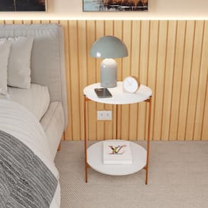 A Mesa de Apoio Lateral Duda Branco com Pés de Ferro Bronze oferece a leveza e sofisticação que seu ambiente precisa. Ideal para apoiar itens essenciais como copos ou controles remotos, ela agrega estilo com seu design clean e elegante. O contraste dos pés de ferro bronze torna a peça ainda mais atraente.