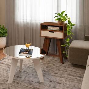 Mesa De Apoio Lateral Vip Com Gaveta E Nicho Cedro / Off White Mesa de Apoio Lateral Vip Com Gaveta e Nicho Cedro / Off White - A Mesa de Apoio Vip traz um toque de modernidade ao seu espaço. Com pés robustos em MDF de 25mm e corpo em MDF/MDP de 15mm, promete durabilidade. A gaveta, equipada com corrediças metálicas, é ideal para guardar pequenos itens, facilitando a organização. Sua pintura UV texturizada realça a estética e simplifica a manutenção.