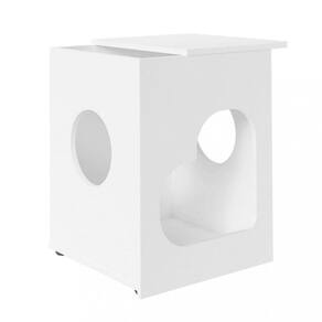 Características: Dupla função: mesa de apoio e casinha para pets Indicado para cães e gatos de pequeno e médio porte Tampo pode ser montado para a esquerda ou direita Espaço de armazenamento embaixo do tampo Detalhes usinados Tampo e Laterais em MDF 15mm Base e Traseira em MDP 15mm