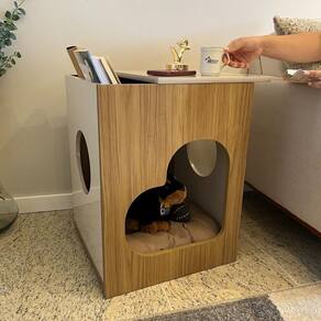 Para tornar os cômodos da sua casa mais completos e funcionais para você e seu pet, a Mesa Pet é uma excelente escolha! Versátil, ela pode ser usada na sala de estar, ao lado do sofá ou do rack, como mesa de cabeceira no dormitório ou até mesmo ao lado de uma poltrona no escritório. Sua superfície é ideal para apoiar livros, luminárias e vasos de flores, enquanto o espaço interno acolhedor, onde pode ser colocada uma caminha ou almofada, tornando um cantinho confortável para o seu animal de estimação. Fabricada em MDF/MDP, possui acabamento fosco e tampo em MDF, suportando até 5 kg.