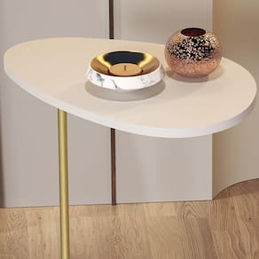 Seu tampo com formato orgânico, produzido 100% em MDF, traz leveza visual e um design fluido que valoriza a decoração com personalidade.
