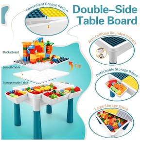 Material Seguro e Resistente: Este conjunto de mesa de blocos de construção para crianças é feito de materiais ABS/PP não tóxicos e inodoros de alta qualidade, garantindo segurança e durabilidade. Proporciona um tempo de jogo seguro e divertido para as crianças.