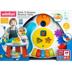 - Mesa de atividades com teclado piscante de 5 notas e atividade de soltar bolas