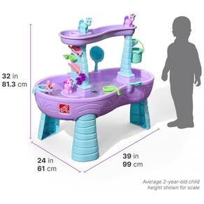 DIVERTIDO PARA TODAS AS CRIANÇAS: A ampla superfície permite que várias crianças brinquem juntas, incentivando habilidades sociais e de compartilhamento. A bacia comporta até 19 litros de água. Dimensões montadas: 81 cm de altura x 61 cm de largura x 99 cm de profundidade.