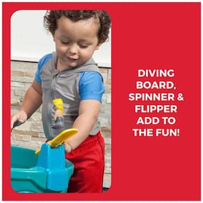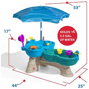 DOIS NÍVEIS: Com dois lençóis freáticos, esta mesa oferece espaço para várias crianças brincarem ao mesmo tempo. A mesa superior comporta 8,4 litros, enquanto a mesa inferior comporta 12,3 litros.