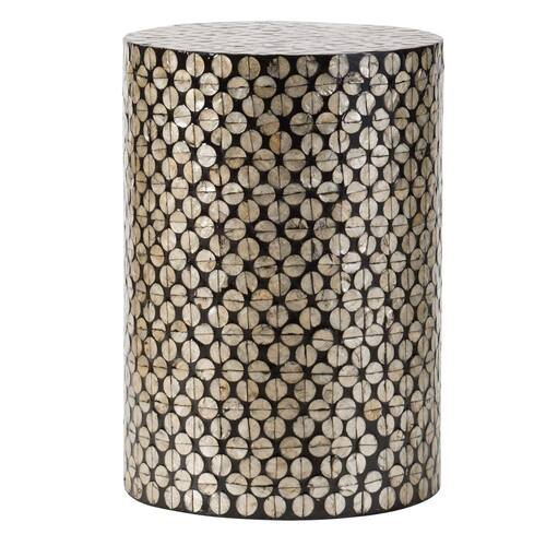 Mesa de banqueta Benjara de 20 polegadas, design redondo de madeira, moderna, embutida em capiz, preta e branca - 20 polegadas.