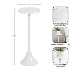 Mesa de bebidas moderna com pedestal de metal Kate and Laurel Sanzo, 9 x 9 x 23, mesa de martini branca decorativa com mesa martelada para uso como suporte de plantas de interior ou minimesa de sala de estar