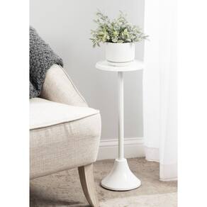 - Mesa redonda versátil: use esta pequena mesa lateral branca como um lugar para sua vela, uma bebida ou um charmoso suporte de plantas para sua planta favorita