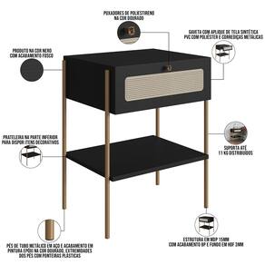 A estrutura com pés metálicos estilo industrial garante durabilidade e robustez, enquanto a delicada telinha sintética na gaveta adiciona um charme extra, tornando-a não apenas funcional, mas também um verdadeiro destaque na decoração. Organize seus livros, óculos ou itens pessoais com facilidade e mantenha tudo ao seu alcance, criando um espaço que reflete sua personalidade e bom gosto com essa mesa lateral para quarto.