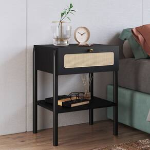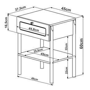 A estrutura com pés em madeira maciça garante durabilidade e robustez, enquanto a delicada telinha sintética na gaveta adiciona um charme extra, tornando-a não apenas funcional, mas também um verdadeiro destaque na decoração. Organize seus livros, óculos ou itens pessoais com facilidade e mantenha tudo ao seu alcance, criando um espaço que reflete sua personalidade e bom gosto com essa mesa lateral para quarto.