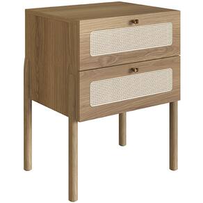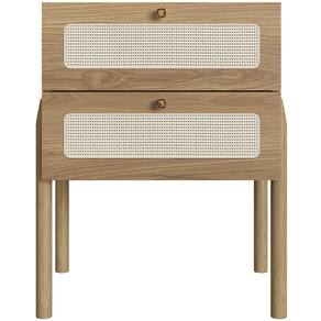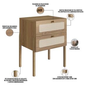 A estrutura com pés em madeira maciça garante durabilidade e robustez, enquanto a delicada telinha sintética nas gavetas adiciona um charme extra, tornando-a não apenas funcional, mas também um verdadeiro destaque na decoração. Organize seus livros, óculos ou itens pessoais com facilidade e mantenha tudo ao seu alcance, criando um espaço que reflete sua personalidade e bom gosto com essa mesa lateral para quarto.