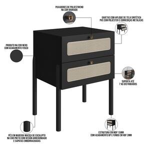 A estrutura com pés em madeira maciça garante durabilidade e robustez, enquanto a delicada telinha sintética nas gavetas adiciona um charme extra, tornando-a não apenas funcional, mas também um verdadeiro destaque na decoração. Organize seus livros, óculos ou itens pessoais com facilidade e mantenha tudo ao seu alcance, criando um espaço que reflete sua personalidade e bom gosto com essa mesa lateral para quarto.