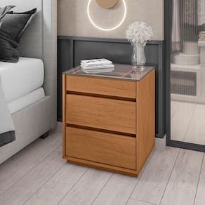 Mesa de Cabeceira 03 Gavetas Belize Cedro Casa D - Marrom Chocolate