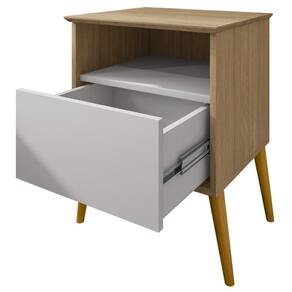Mesa de Cabeceira Cancum, funcionalidade sem perder o estilo. Estrutura em MDP/MDF com acabamento em pintura UV texturizada. Conta com gaveta, corrediças metálicas, nicho, tampo com borda chanfrada (MDF) e pés palito em madeira maciça (Pinus). Este produto será entregue em 1 volume.