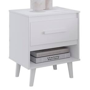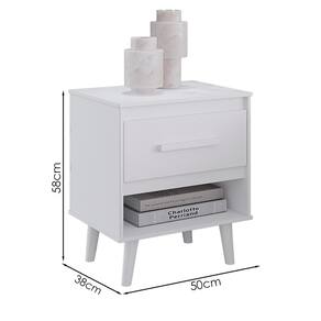 Mesa de cabeceira Mila, ideal para compor quartos com modernidade e elegância. Produzida em MDP (12/15mm) com acabamento em pintura UV. Conta com gaveta com corrediças telescópicas, puxador em plástico e pés estilo retrô. Este produto será entregue em 01 volume.