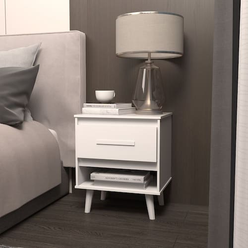 Mesa de Cabeceira 1 Gaveta com Nicho e Pés Retro Estilo Moderno para Quarto Branco Mobília Decor